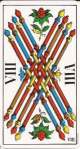 Here’s what the 1JJ booklet says about the same card: “Diligent activity, swiftness, decisions made rapidly.” Sorry, but I just don’t see anything swift or rapid in that heavy mass of crossed rods that are locked together in the center.