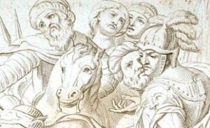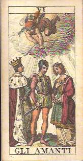 - The Lover stands between his sweetheart and a king who rests his hand on his shoulder. The young man’s clothing announces his divided loyalties. He wears tights and pouffy pants, but also a helmet and armored corselet. He seems to be torn between love and duty – following Cupid’s call or the demands of his king, who may also be his father.