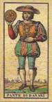 In 1847, Gummppenberg turned his workshop over to his son-in-law, Lamperti, who ran it from 1848 to 1861. About this same time, Teodoro Dotti set up a competing print shop. He may have been a former employee of Gumppenberg who went out on his own. He printed knock-offs of Dellarocca’s design, as well as the traditional French TdM, and decks that blended design elements from Dellarocca and the TdM. We don’t know if Gumppenberg authorized Dotti to use Dellarocca’s designs, or if Dotti pirated design elements to incorporate into his own decks. The Dotti firm was operated by various family members until about 1883 when it was acquired by E. Colombo who continued to print the same decks for many years.