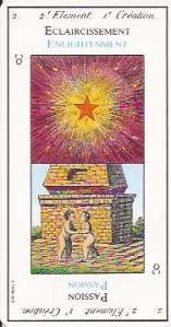 Illustration: Card 2 from Grand Etteilla Egyptian Gypsies Tarot. Cartomancie Grimaud/France Cartes, 1977.