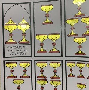 Twenty-five years ago, Marco Benedetti painted a heavenly homage to the Visconti-Sforza deck in tempera on gold leaf. A few years ago, he offered his deck to the public on Gamecrafter, and as a custom printed gold-leaf deck. To celebrate the 25th anniversary of his original deck, he is offering both the original deck and an updated 25th anniversary edition on Gamecrafter and as a custom printed gold deck. Both Gamecraafter decks come with additional cards, so you really get two decks in one. There are several options for customizing the gold deck., which I discuss toward the bottom. First, let’s compare the two Gamecrafter versions.