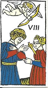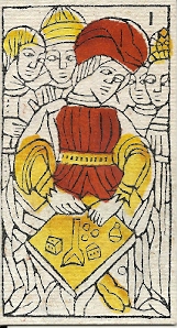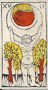 This deck is the only example (aside from the Rosenwald deck) of what tarot for the masses looked like in fifteenth-century Italy. Some of the clothing, like the men’s short tunic, tells us the deck is no earlier than 1475. The numbering system, with Temperance as VI and Justice as XX, is a clue that the deck originated in the vicinity of Ferrara. (One of the museums housing examples of this deck is in Budapest, otherwise the deck has no connection to that city).