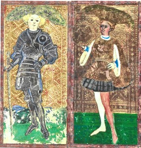 Marco Benedetti’s restored Visconti di Modrone deck is a magic carpet ride to a late medieval world of elegant lords and ladies and knights in shining armor. A world where fabulously wealthy aristocrats commissioned trionfi decks drenched in silver and gold from the greatest artists of the day.