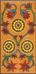Look at the suit symbols in your deck. Which suits seem compatible with each other because they share qualities like color or shape? Are Cups compatible with Rods because Cups have straight stems? Or are Cups more compatible with Coins because Cups have round bowls? Where is the center of gravity – the center of the card, or divided among the suit symbols? Which suits seem the least compatible? Can you find any common ground between Coins and Rods?