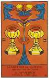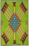 This system considers the qualities of the suit symbols themselves rather than assigning elements to the suits. Traditionally the round Cups and Coins suits are compatible with each other because they are both receptive and passive. The active long suits of Rods and Swords are likewise compatible with each other. But Cups have straight stems, and even-numbered swords cards have no straight features. This adds ambiguity to the system.