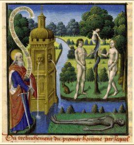 - Tree of Knowledge, Adam, Eve, Serpent and Corpse. Illustrated manuscript of City of God, St. Augustine, 1380s.