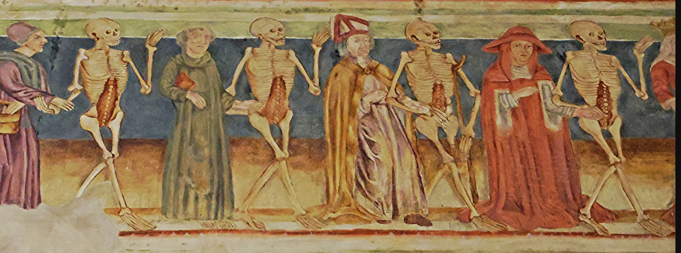 The Dance of Death (Danse Macabre) showing death carrying off all types of people, appears in numerous late-medieval frescoes, easel paintings, and book illustrations.