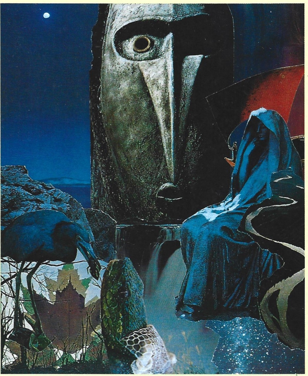 The Voyager Death card is rather melancholy. In the lower left, a falling leaf, shed snake skin, and a heron eating a crayfish are all symbols of a natural end to life. The mask’s knife-like nose reminds us that some things need to be consciously cut away. The lone figure is a statue by Augustus Saint Gaudens, commonly known as Grief, that rests in a cemetery in Washington, D.C. Behind it, a river snakes its way to the ocean where it will lose its separate identity. According to the deck creator, the card’s message is that awareness of the inevitability of death can encourage us to live more fully in the moment.