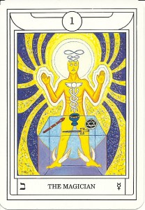 Wirth’s writings go beyond Levi to say that this card, associated with the number one and the first letter of the alphabet, represents the First Cause and pure Spirit. The card reminds us that the Creator is the original illusionist who dazzles us with his creations until we no longer see the spiritual reality behind the illusion.