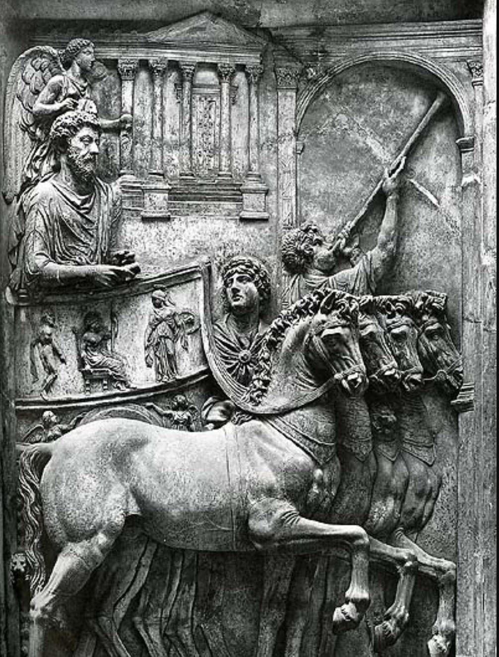 - Triumph of Marcus Aurelius (Constantine). Relief panels that may have been part of a triumphal arch for Marcus Aurelius and later reused for Constantine’s triumphal arch.