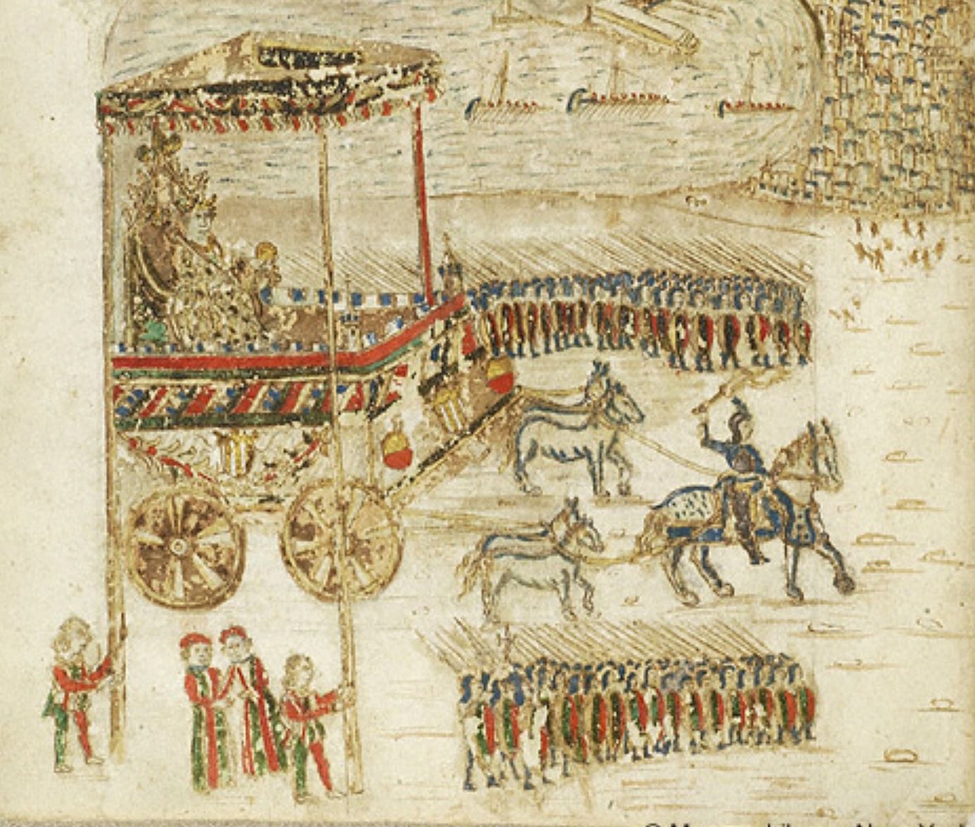 - Triumphal Parade of Alfonso of Aragon. Cronaca della Napoli Aragonese, 1498. The Morgan Library, New York.