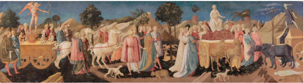 The artist Pesellino illustrated all six of Petrarch’s allegories as a triumphal parade on the sides of a wedding chest in 1445.