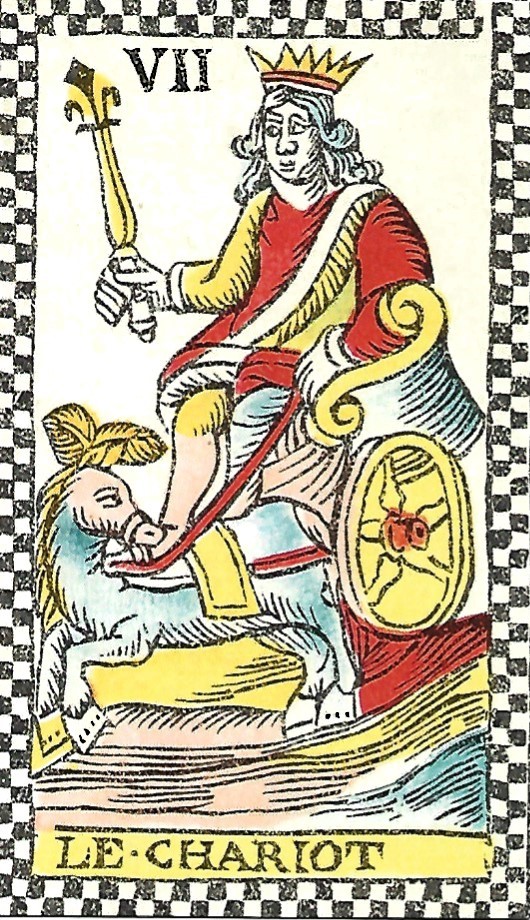 The Tarot de Marseille Chariot has remained virtually unchanged for nearly 400 years. Illustrated here is one of the earliest Tarot de Marseille known to us alongside one of the most popular versions printed in the twentieth century.