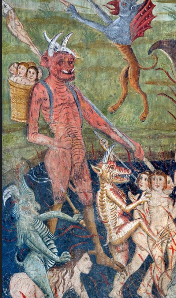 - Devil Leading the Damned to Hell, fresco in La Chapelle des Penitents, Chapel of the White Penitents, La Tour France, 1492