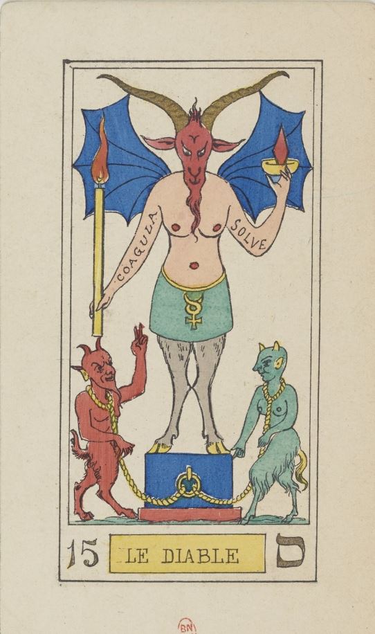 While the standard Tarot de Marseille Devil has remained unchanged since the 17th century, Eliphas Levi’s drawing of Baphomet injected a radically new look into occult tarot.