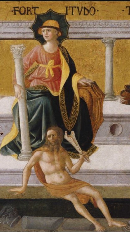 Allegory of Fortitude. Francesco Pesellino, mid 15th century, Florence. From a cassone panel of the seven virtues. Collection of the Birmingham Museum of Art.