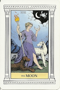 Until quite recently, the tarot Moon card was interpreted astrologically. In traditional astrology, the moon is cold and wet. The Moon draws things to it with its gravitational pull. As the planetary sphere closest to the earth, the Moon receives energy from the Sun and the five classical planets, allowing this energy to take material form on earth. The Moon is where mental images are stored that eventually give rise to visions and dreams.