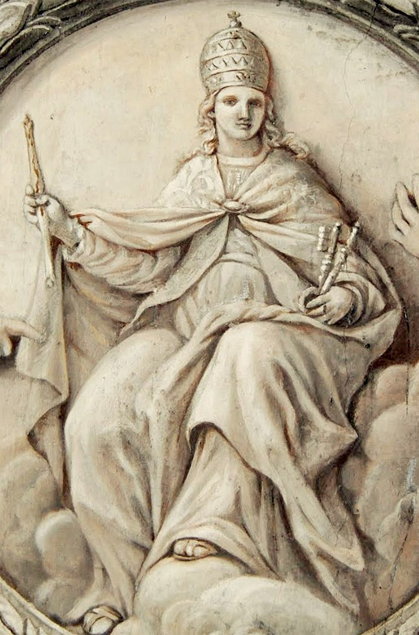 We moderns seem to need a subversive, even dangerous Popess. But is that how she was seen by the good Catholics who played Tarocchi with these cards in the 15th and 16th centuries? These early Tarocchi players were familiar with images of a female pope from the art of their time. Just as the Pope in the Tarot deck depicts a conventional, non-controversial religious figure, so the Popess was a conventional embodiment of the Church.