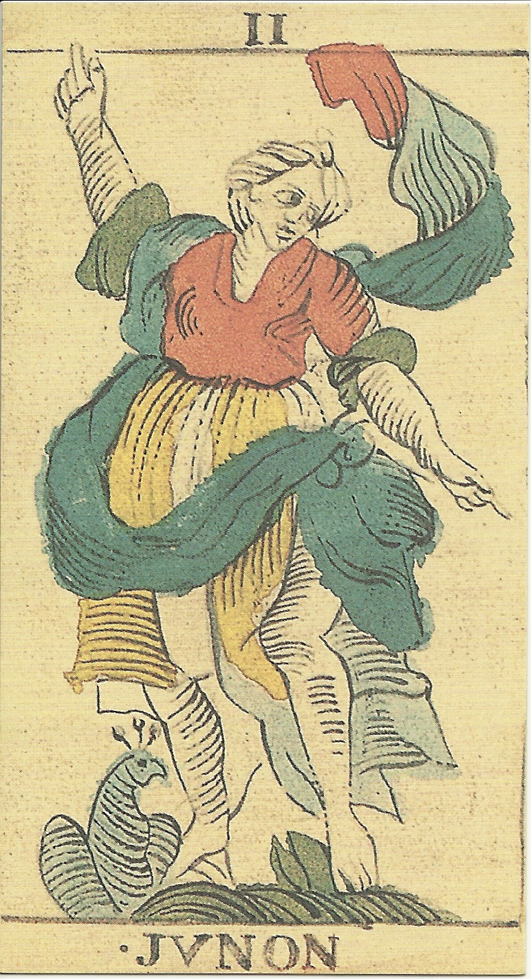 In spite of being conventional religious figures, the Pope and Popess were seen as problematic and were replaced with secular figures in some regions during the 18th century. In certain parts of France, Germany and Switzerland, Besançon decks substituted the Roman deities Jupiter and Juno for the Pope and Popess. This wasn’t done because the Catholic Church objected to religious figures on playing cards, as many people assume. These changes were made in heavily Protestant areas where people didn’t want to see Catholic imagery on their cards.