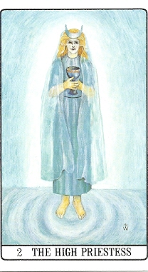 In his book, Pictorial Key to the Tarot, Waite couldn’t praise the High Priestess highly enough. He calls her the Secret Church, the Shekinah, the spiritual bride, supernatural mother, daughter of the stars. He says that in some respects this is the highest and holiest of the major arcana. Waite’s divinatory meanings for this card include: secrets, mystery, wisdom, silence, the unrevealed future, and a woman of interest in the reading.