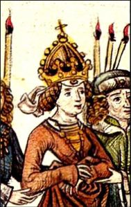 If the emperor in the Modrone deck is Holy Roman Emperor Sigismund, then the Empress could be his wife, Empress Barbara von Celje (Cilli). Queen of Hungary and Bohemia in her own right, she spent most of her time administering her feudal lands in Hungary and serving as her husband’s regent, while the Emperor was occupied elsewhere with political intrigues. Dark rumors of multiple lovers and heretical religious beliefs swirled around her. It’s impossible to know how much of it was truth and how much the usual way of dragging a powerful woman through the mud. Although married to the Holy Roman Emperor for strategic reasons at a very young age, Barbara’s intelligence and political astuteness made the marriage a successful political alliance.