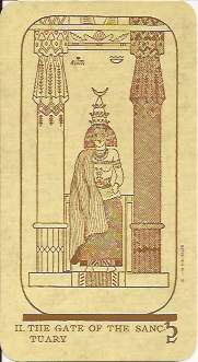 The first Tarot style to gain a foothold in North America was the Egyptian deck designed by French occultists Falconnier and Wegener in 1890 based on the esoteric writings of Paul Christian. In 1918, C.C. Zain (Elbert Benjamine 1882-1951) used Wegener’s Egyptian deck for his Brotherhood of Light mail order lessons. This was the first time Paul Christian’s teachings were available in English. In 1936 the deck was redrawn by Gloria Beresford with no significant changes to the design, then redrawn once again in 1994 and issued as The Sacred Tarot. Now called the Church of Light, the organization still offers Zain’s correspondence courses.