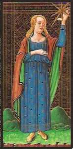 Early tarot images may seem exotic to us, but they were very familiar to 15th century card players from wall frescoes, illustrated books, plays and pageants. From the start, all tarot decks exhibited a great deal of consistency. They all had the same twenty-two images we’re familiar with, and no other. For instance, the Star card could depict an astronomer, the Magi following the star of Bethlehem, or a woman holding up a star; but the card was easily recognizable as illustrating the concept of Star.