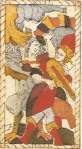 The only decks created before the mid-1500s that have survived are luxury hand painted decks and the uncut sheets of block printed cards accidentally preserved in book bindings. With such sketchy evidence, it’s extremely difficult to follow lines of influence among tarot decks. During this time, many styles of tarot cross-pollinated, and unique decks continued to be commissioned. Tarot de Marseille (TdM) imagery had been around since at least 1500, and seemed to be preferred by tarot printers, but there was always a healthy number of alternative decks available. Whenever you see “standard numbering” or “standard imagery” mentioned in these pages, it refers to the Chosson-Conver deck style that remains the standard Tarot de Marseille design today.